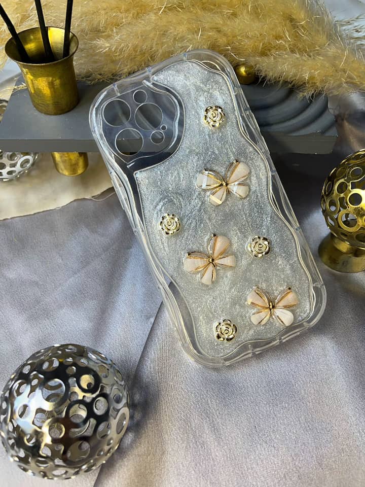 قاب موبایل گل پروانه ای شاین دار 3D برجسته iphone 16promax